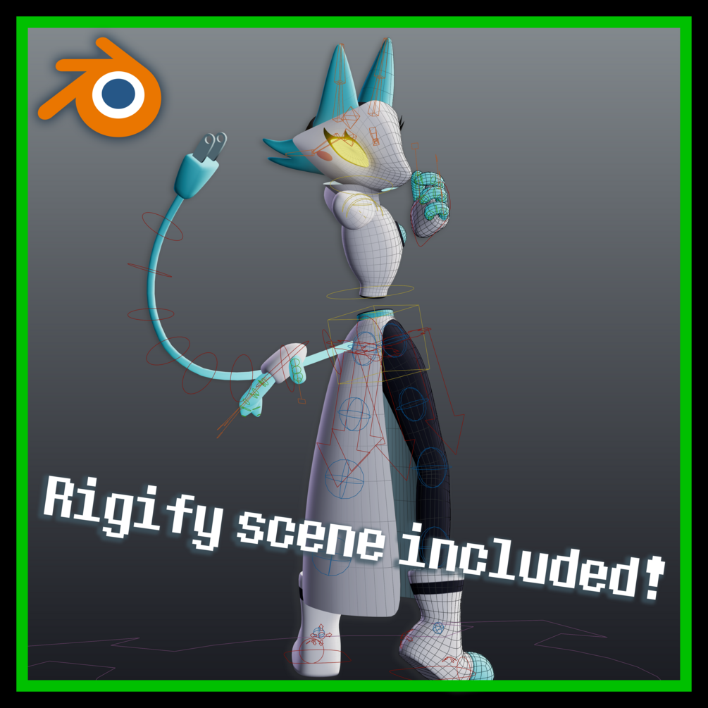 VRChat Ready 3D Asset, Work Blend File, Rigify Blend File, and PSDs files.